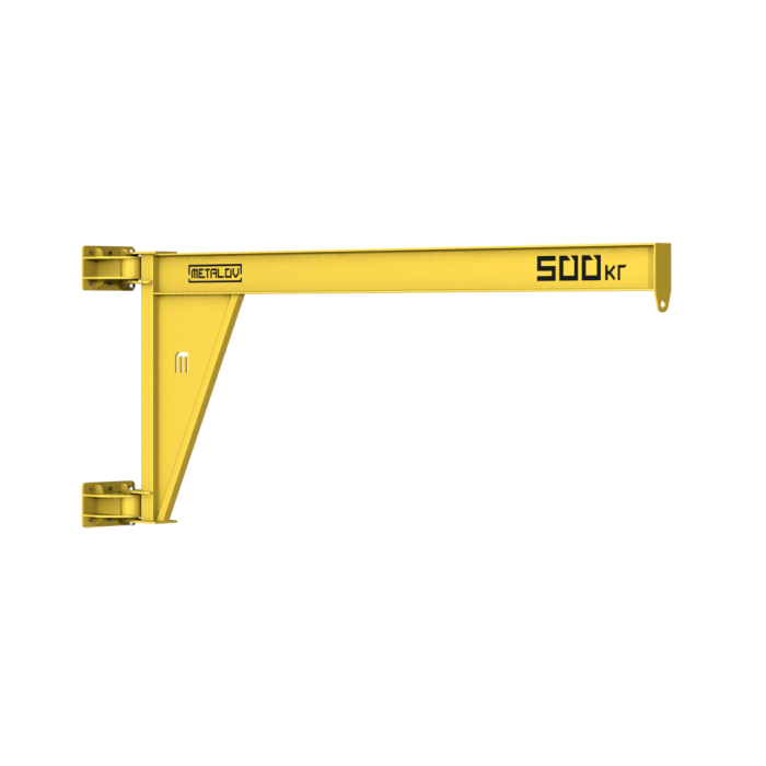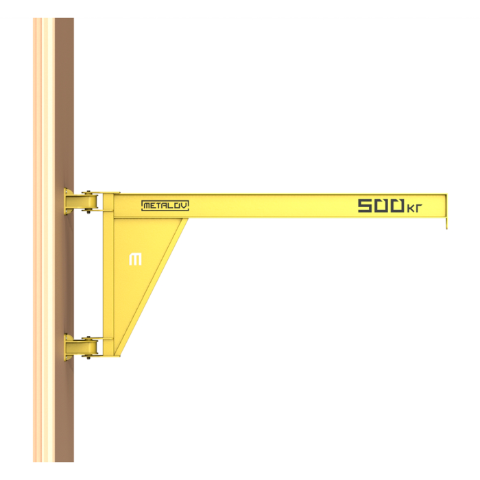 Консольный поворотный настенный кран с вылетом стрелы 3 метра и грузоподъемностью до 500 килограмм, применяется в условиях ограниченного пространства, или при отсутствии необходимости в установке больших кранов. Стрела крана обеспечивает подъем и поворот грузов на 180 градусов. А крепление к стене позволяет использовать существующие конструкции и избавляет от необходимости монтажа или создания новых элементов.
