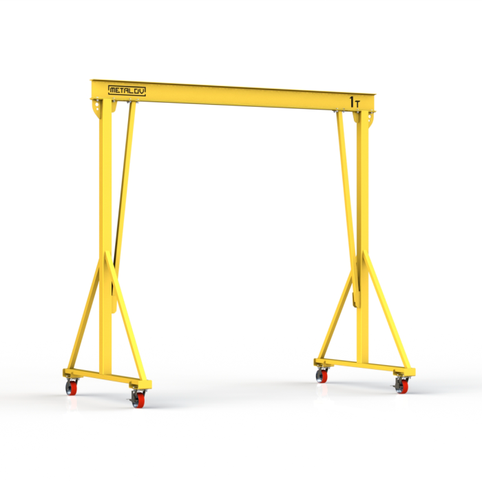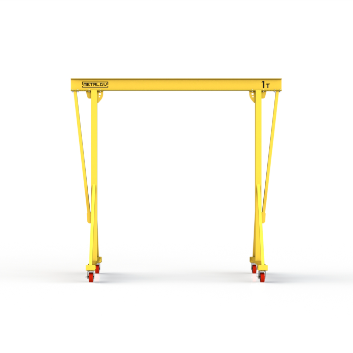 Мини-кран козловой мобильный (МПУ) усиленной конструкции Мобиус-V с грузоподъемностью до 1 тонны, с высотой до балки 2 метра и шириной пролета 2 метра, это компактное устройство, для подъема и перемещения грузов на небольшие расстояния. Кран адаптирован для работы в помещениях, и может быть использован на улице.