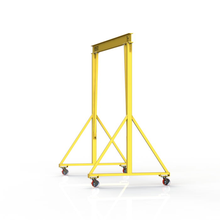 В конструкции стоек крана использованы усиливающие элементы – раскосы. Данное техническое решение увеличивает общую жесткость и позволяет существенно снизить поперечную раскачку при перемещении груза. Усиленный тип МПУ отлично адаптирован для применения с талями, оснащенными электроприводом которые создают достаточно сильные колебания.