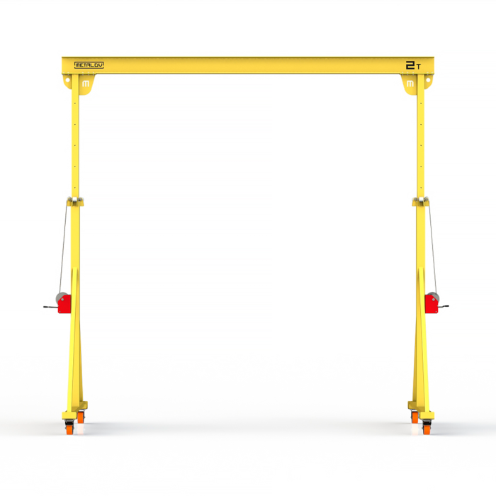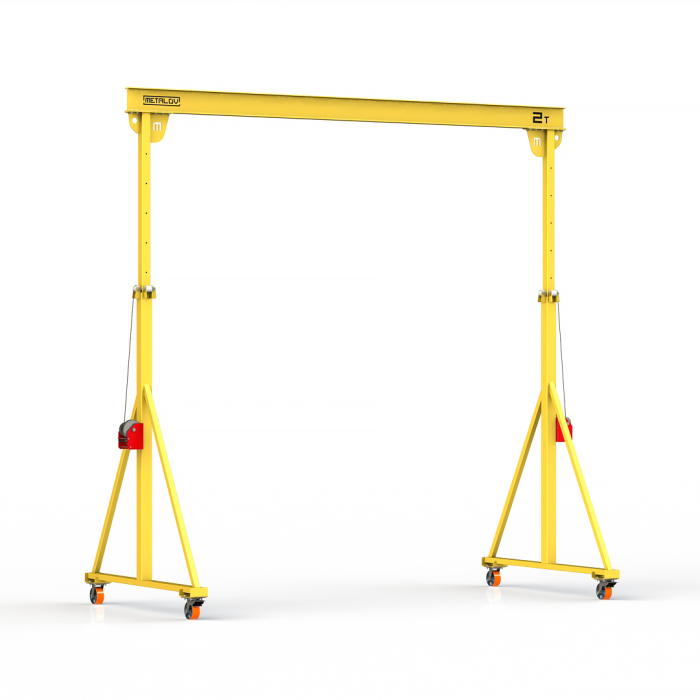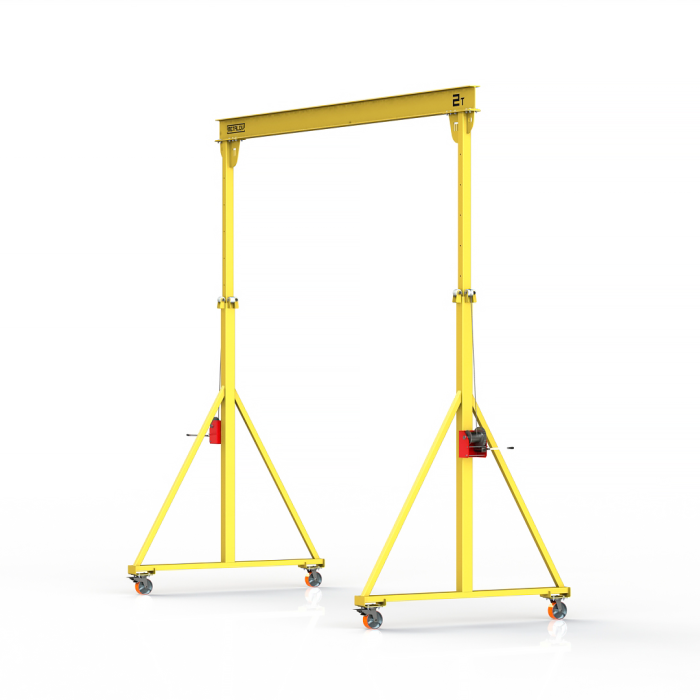 Мини козловой кран мобильный ручной (МПУ) с регулируемой высотой до балки Мобиус-TU имеет грузоподъемность до 2 тонн, минимальная высота составляет 3 метра, максимальная 4 метра. Ширина пролета 5 метров. Кран оборудован телескопическими опорами, высота которых регулируется с шагом в 250 мм, телескопические опоры выдвигаются при помощи ручной лебедки.