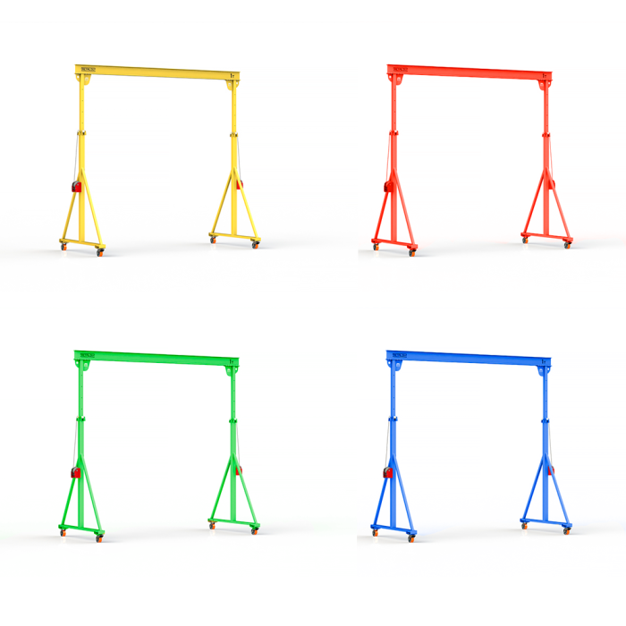 Мини козловой кран мобильный ручной (МПУ) с регулируемой высотой до балки Мобиус-TU имеет грузоподъемность до 5 тонн, минимальная высота составляет 4 метра, максимальная 6 метров. Ширина пролета 4 метра. Кран оборудован телескопическими опорами, высота которых регулируется с шагом в 250 мм, телескопические опоры выдвигаются при помощи ручной лебедки.