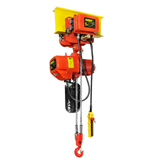 ТЭЦ OCALIFT 05-02D 5т 4,5м 380в это надёжная передвижная электрическая таль грузоподъёмностью до 5 тонн, предназначенная для плавного подъёма и опускания грузов в промышленных и складских условиях. Таль имеет две скорости подъема, что позволяет на нормальной скорости (2,7 метров в минуту) поднимать грузы, а на маленькой скорости (0,9 метра в минуту) точно стыковать (монтировать) или позиционировать груз. Передвижение тали в горизонтальной плоскости электромотором, таким образом ускоряется и облегчается работа оператора. Модель отличается высокой надёжностью, компактными размерами и простотой монтажа. Закрепляется на стационарную балку, двутавр или другие несущие конструкции, а регулируемая ширина захвата тали позволяет разместить её на балке шириной от 100 до 200 мм.