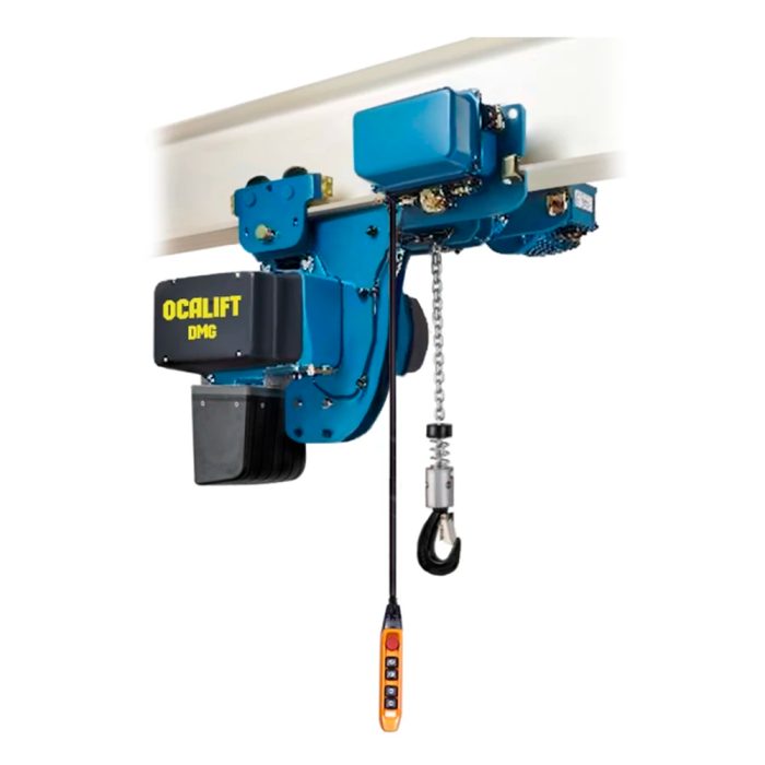 OCALIFT DMG УСВ 1001lhd 1т 3м 380 В это компактная передвижная электрическая таль европейского типа, рассчитанная на подъем грузов до 1 тонны, предназначенная для плавного подъёма и опускания грузов в промышленных и складских условиях. Конструкция выполнена с учетом уменьшенной строительной высоты, что позволяет использовать её в ограниченных пространствах. Таль имеет две скорости подъема, что позволяет на нормальной скорости (8 метров в минуту) поднимать грузы, а на маленькой скорости (2 метра в минуту) точно позиционировать груз. Передвижение тали осуществляется в горизонтальной плоскости электромотором, таким образом ускоряется и облегчается работа оператора. Закрепляется на стационарную балку, двутавр или другие несущие конструкции, а регулируемая ширина захвата тали позволяет разместить её на балке шириной от 76 до 155 мм.
