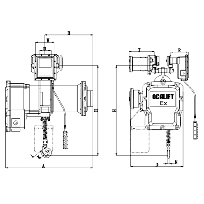 ТЭЦ ВБИ OCALIFT ENK 05-02S 5 т 9 м 380в это передвижная с электроприводом взрывозащищенная электрическая цепная таль (тельфер) грузоподъёмностью до 5 тонн, предназначенная для плавного подъёма/опускания и передвижения грузов в потенциально взрывоопасных зонах и наружных установках класса 1, 2 (по ГОСТ IEC 60079-10-1-2013) и 21, 22 по (ГОСТ 31610.10-2-2017/IEC 60079-10-2:2015), подгруппы IIA, IIB по (ГОСТ 31610.20-1-2016/IEC 60079-20-1:2010) и подгруппы IIIА, IIIB по (ГОСТ 31610.20-1-2016/IEC 60079-20-1:2010).