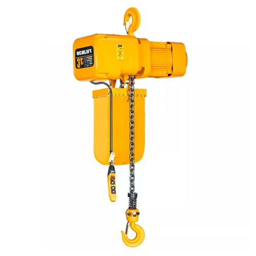 ТЭЦ OCALIFT H03-01S 3т 100м 380В (H-серия) это надёжная стационарная электрическая таль грузоподъёмностью до 3 тонн, предназначенная для плавного подъёма и опускания грузов в промышленных и складских условиях. Дополнительное охлаждение двигателя позволяет работать в нагруженном режиме М5, и исключает перегрев двигателя при длительном подъеме. Таль предназначена для высотных работ. Модель отличается высокой надёжностью, компактными размерами и простотой монтажа. Подвешивается на крюк, подходит для установки на стационарную балку, каретку на двутавр или другие несущие конструкции.